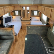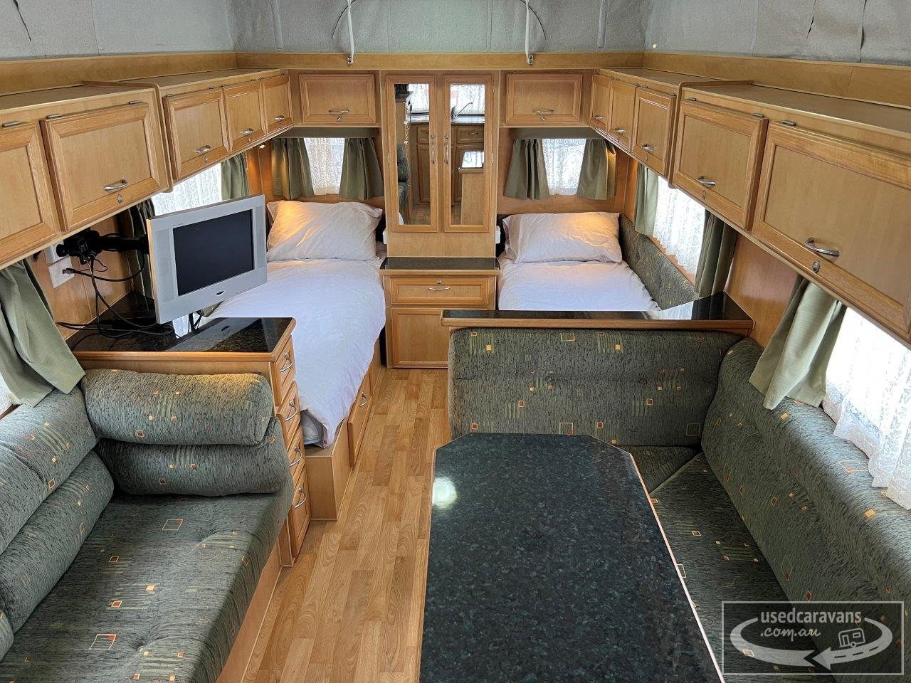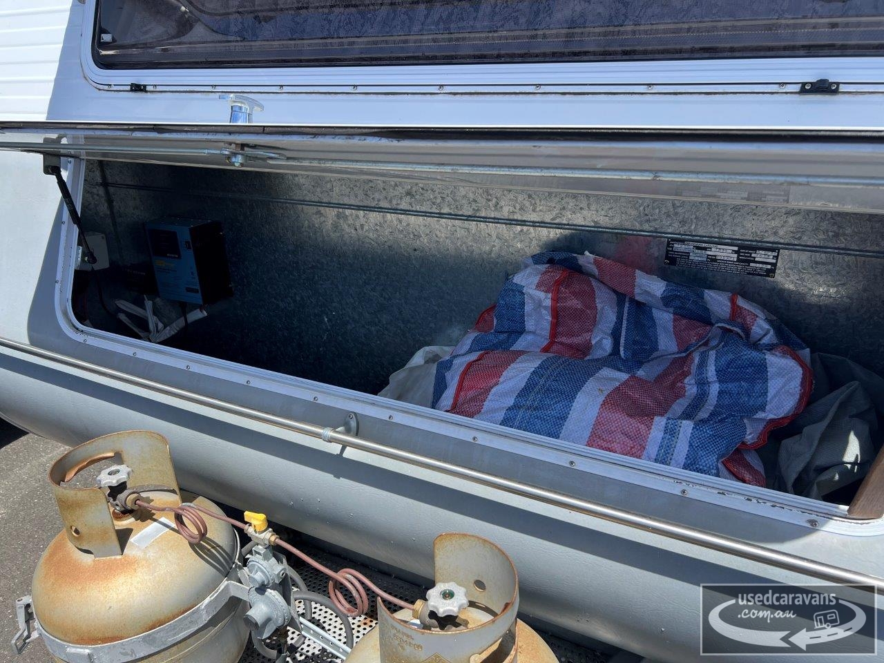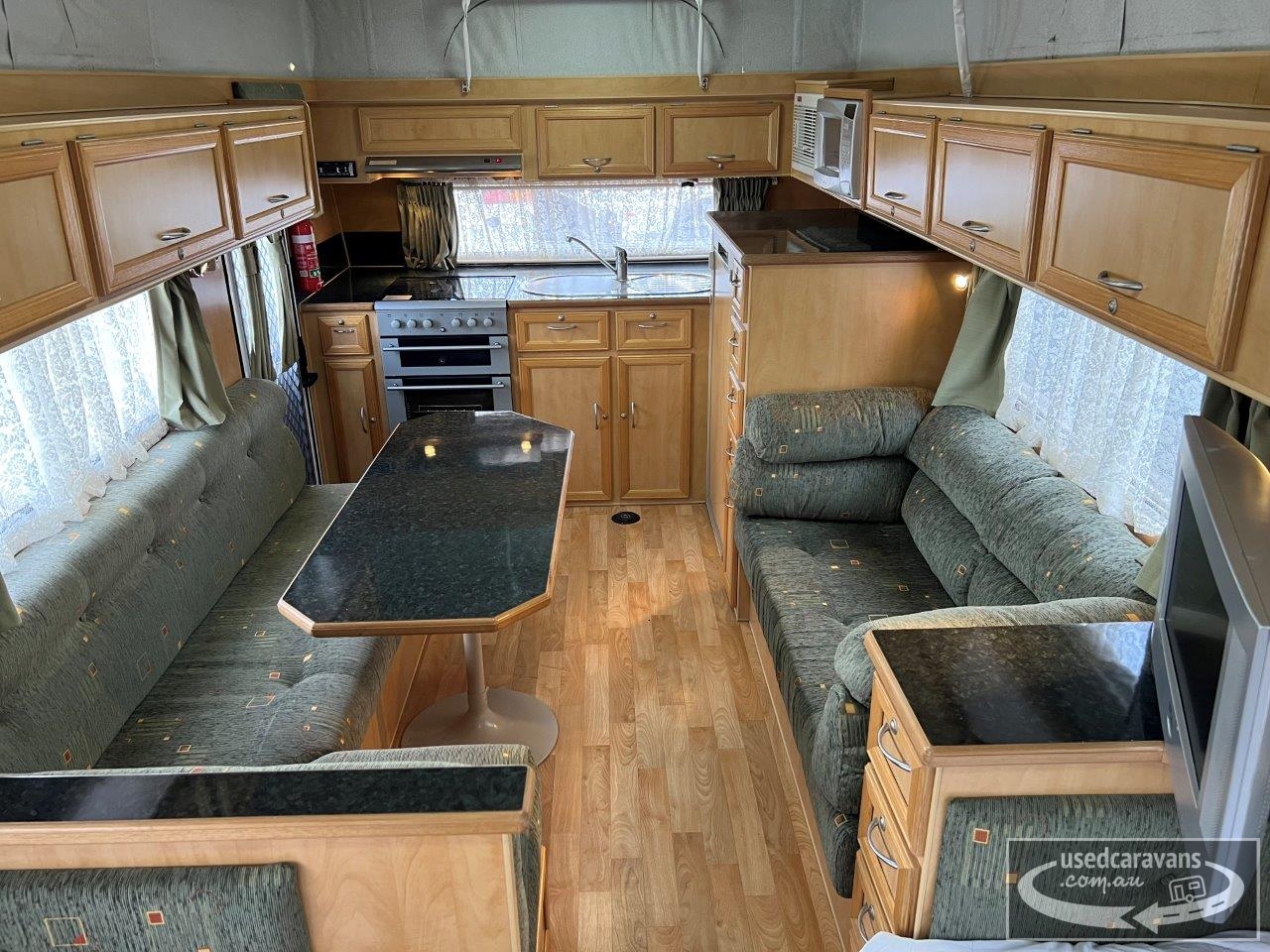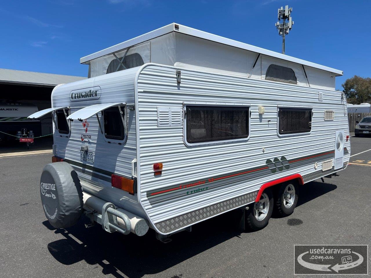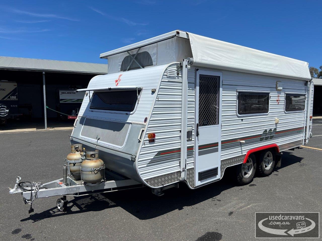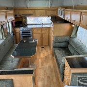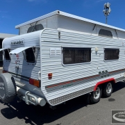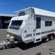 Crusader XL Pop Top, single beds with innerspring mattresses & under bed storage, rollout awning & walls, 3 way 150 litre fridge, tandem axle with 235/75R15 wheels & tyres, Heron Q air conditioning, microwave, gas/electric stove, grill & oven, rollout pantry, L shape lounge & bench seat opposite, front boot, tare 1575 kgs, ATM 1975kgs, R32833