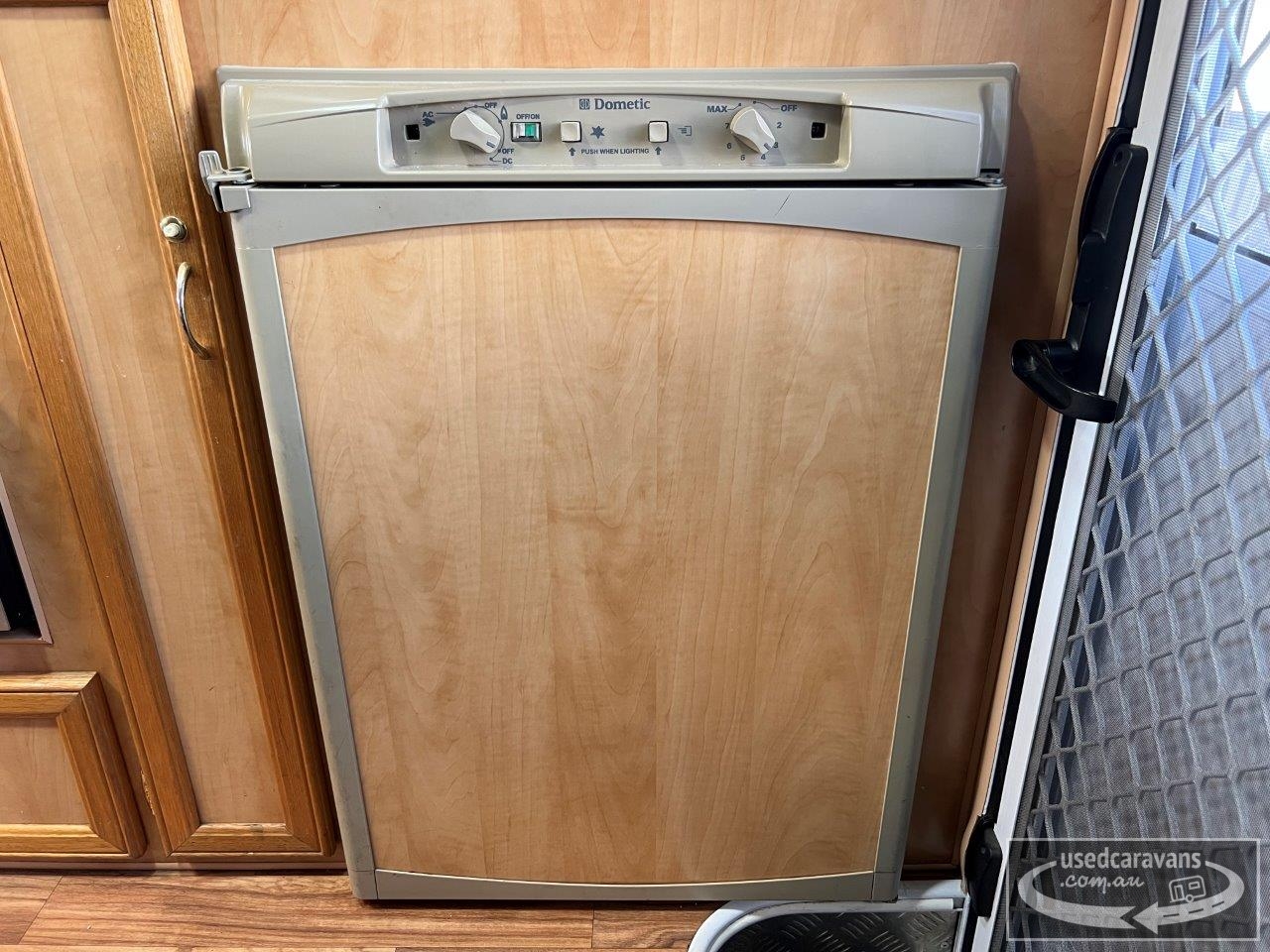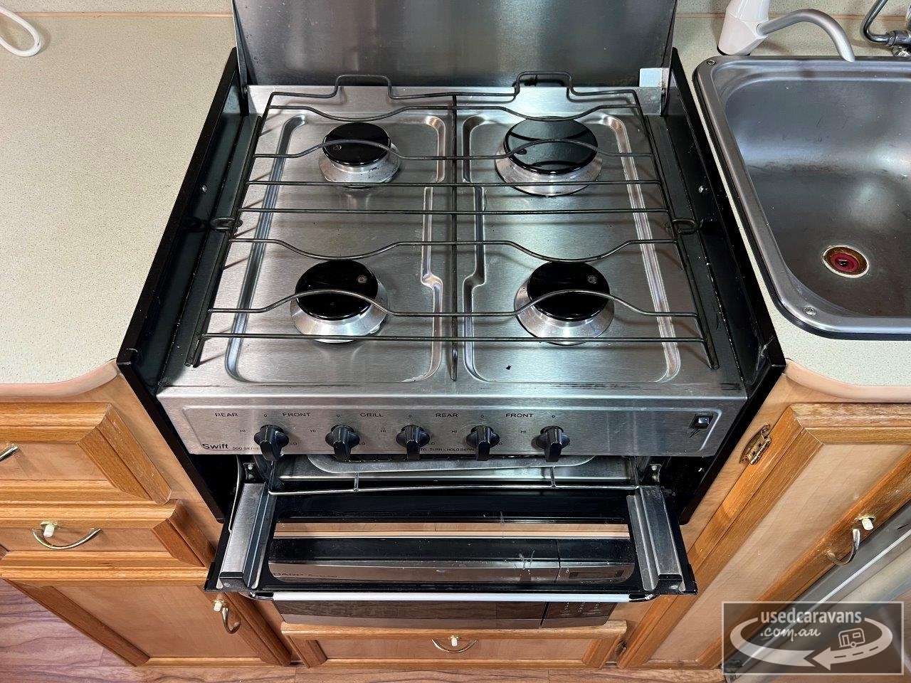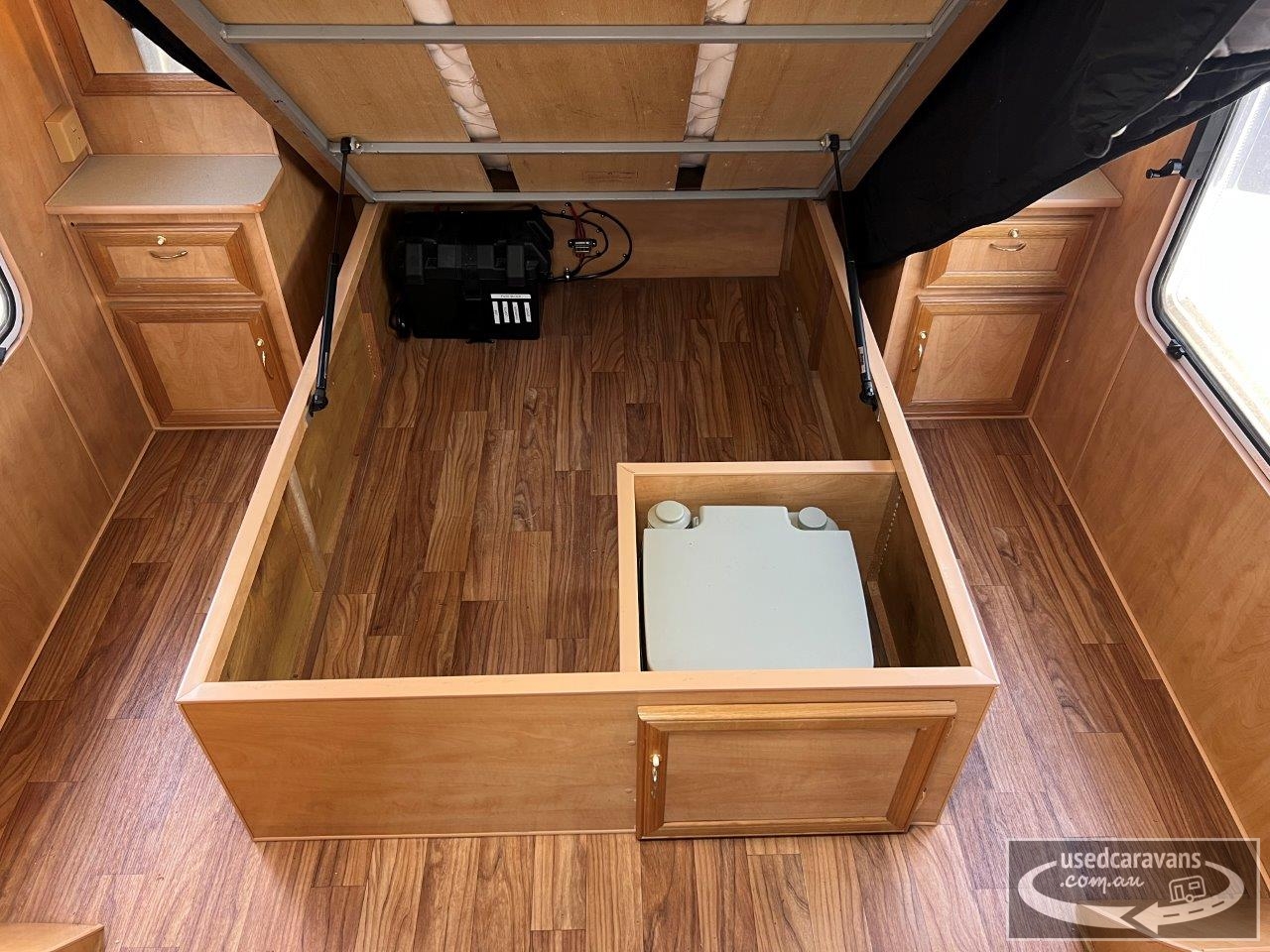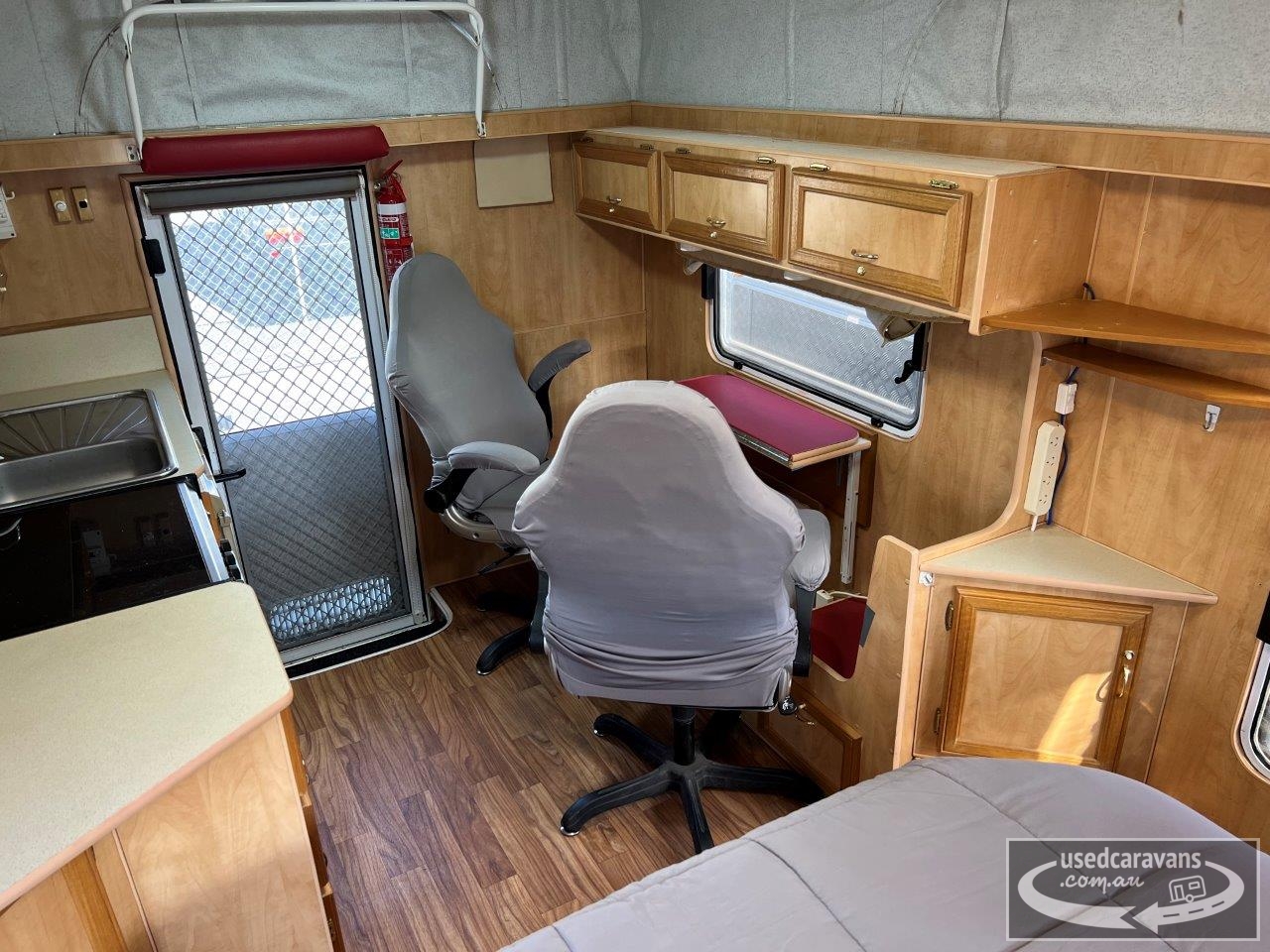 Olympic Sprinter 16' Pop Top, side rollout awning, rear awning, 3 way 90 litre fridge, microwave, single axle, 100ah Gel battery & 1000w inverter, 240v panel heater, double island bed with innerspring mattress & under bed storage, 4 burner gas stove & grill, chequer plate front, pole carrier, front boot, tare 965 kgs, ATM 1265kgs, T40033
