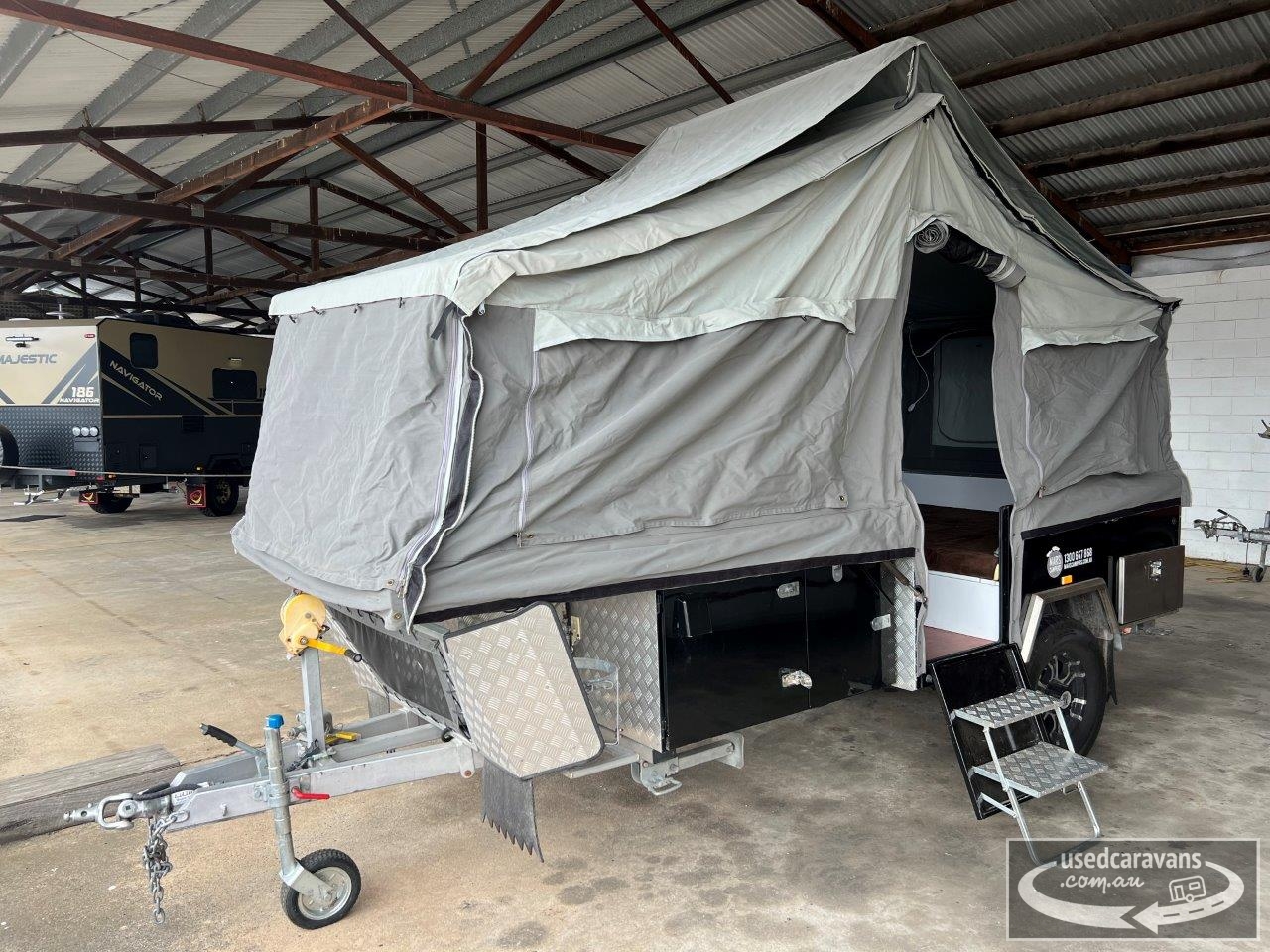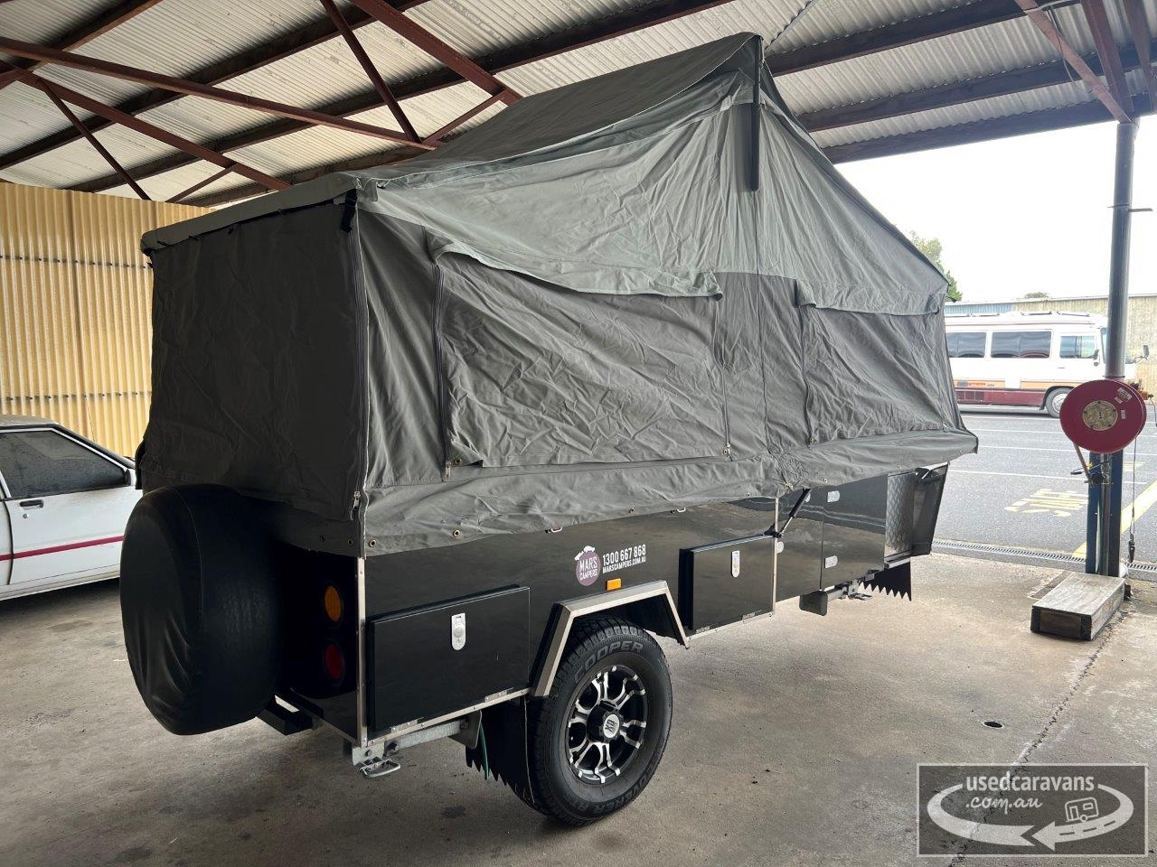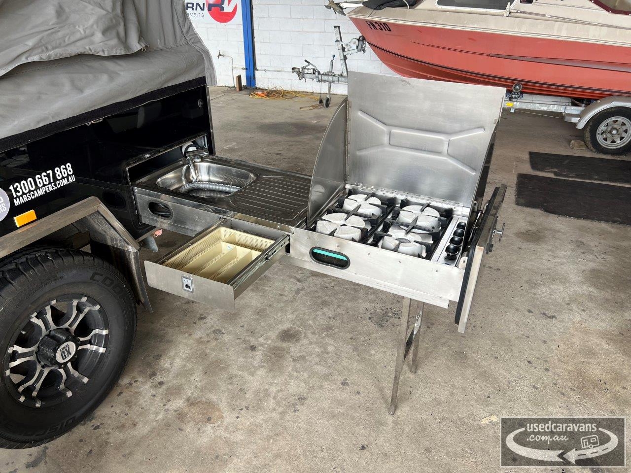 Mars Spirit camper trailer, forward folding, dual shock absorber independent suspension, 16” wheels & 265/70 tyres, McHitch coupling, stone shield, dual 12v batteries, slideout storage lockers, rear slideout kitchen, fresh water tank, tare 1350kgs, ATM 2000kgs, sold as traded, get off the ground for Christmas!