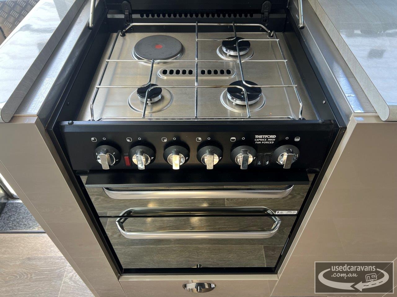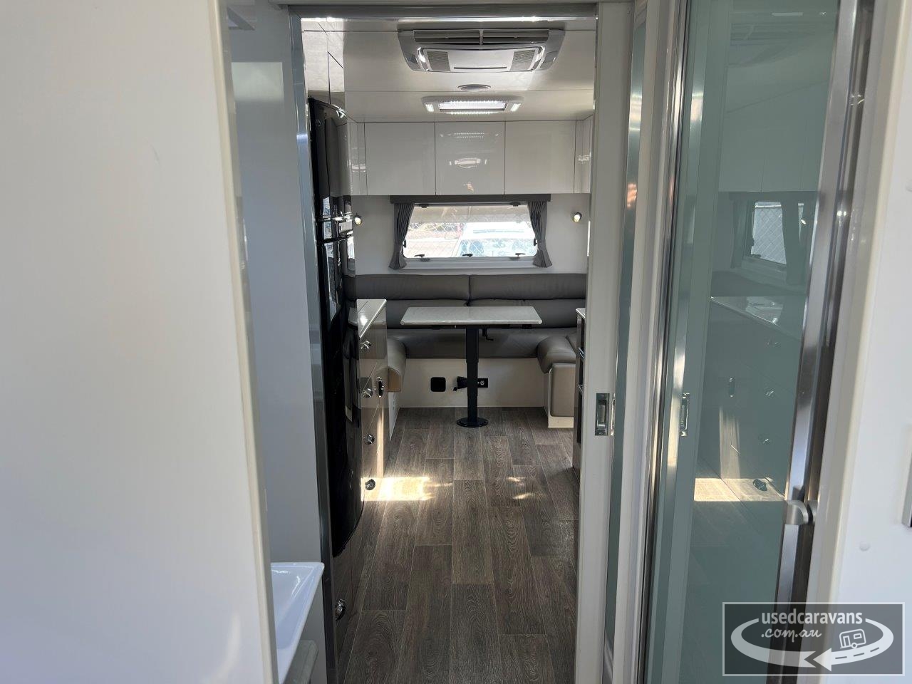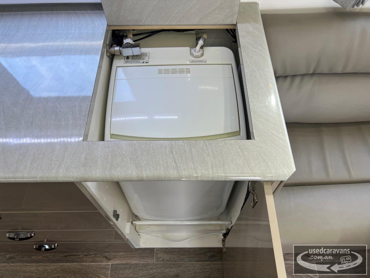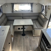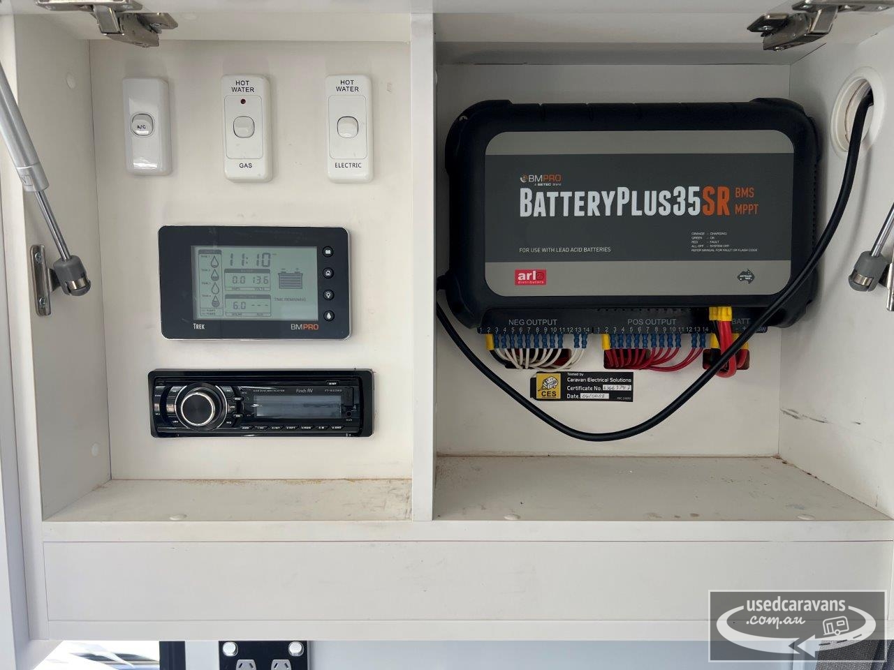 Majestic Knight SLX Caravan, single beds with innerspring mattresses & under bed storage, centre ensuite, rear club lounge, top load washing machine, roll out awning & annexe walls, 2 door Thetford 3 way fridge/freezer, Truma gas heater, microwave, tandem axle with shock absorbers, 235/75R15 wheels & tyres, double glazed windows, Dometic air conditioning, gas/electric stove, grill & oven, triple rollout pantry, Winegard TV antenna, gas/electric hot water service, grey water tank, 2 batteries and 2 solar panels, 2000w inverter, picnic table, 6” A frame with storage tray, front & rear tunnel boots, tare 2496kg, Y83152