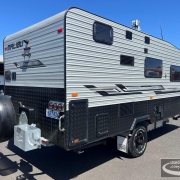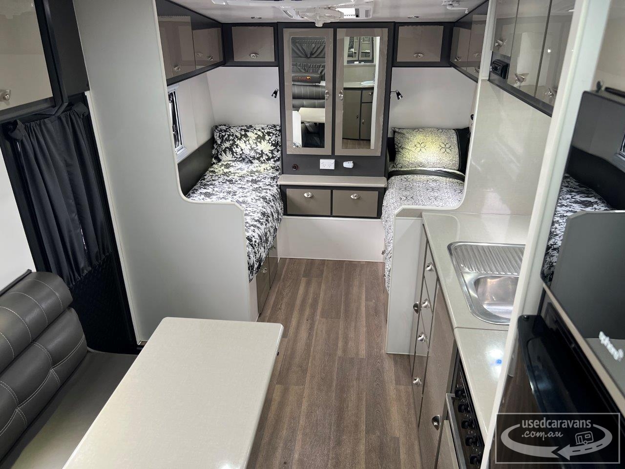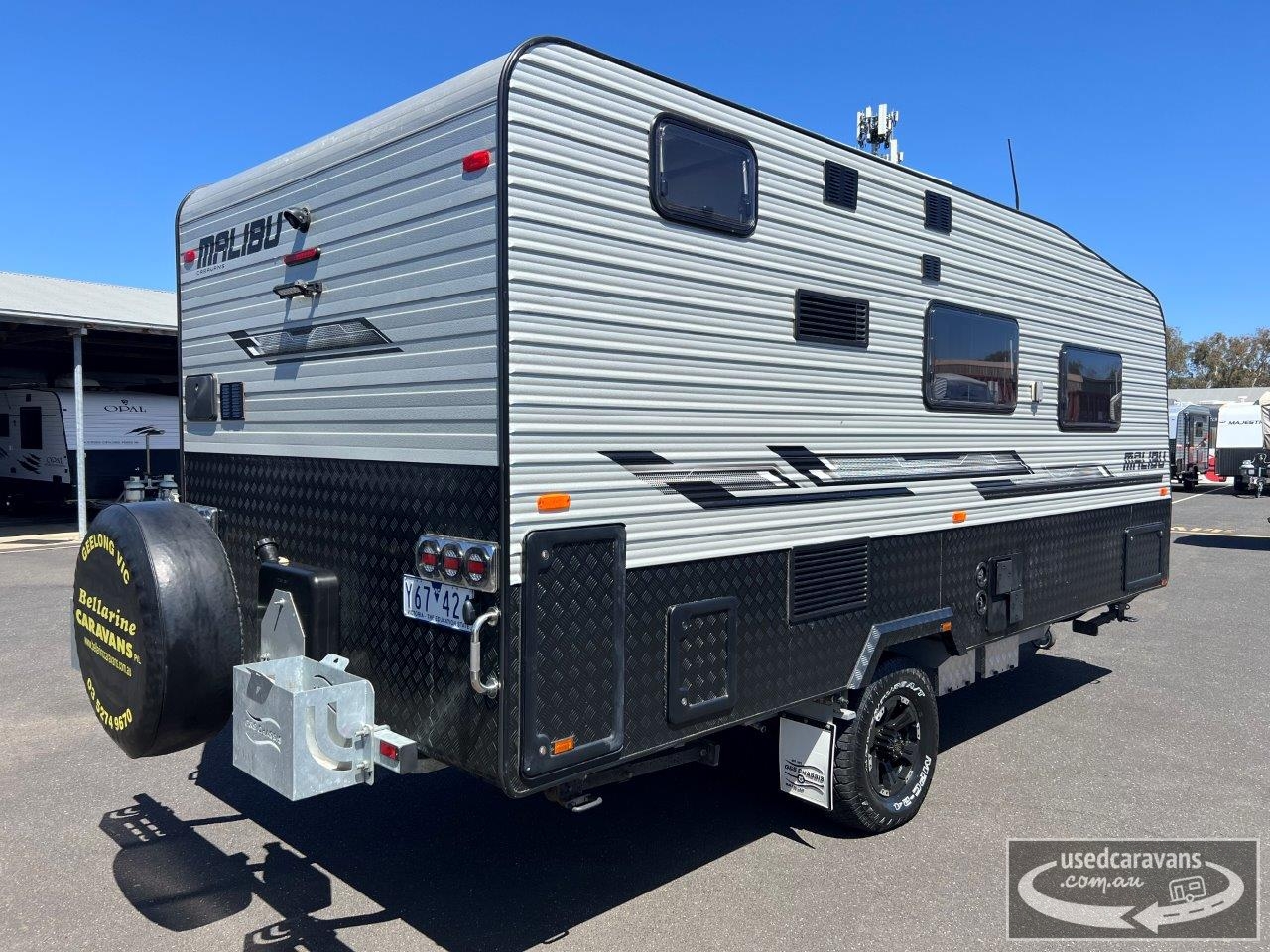 Malibu Off Road Caravan, independent suspension, 16” wheels with 265/75 tyres, 6” chassis & A frame, DO35 offroad coupling, full ensuite with a top load washing machine, Webasto diesel heater, L shape lounge, gas/electric stove & grill, single beds with under bed storage, double glazed windows with built in blinds & fly screens, Thetford 3 way fridge/freezer, Winegard digital antenna, gas/electric hot water service, external shower, LED lighting inside and out, AM/FM/CD player with internal & external speakers, roll out awning, 2 batteries & 2 solar panels, Gree reverse cycle air conditioner, 12v fan, rear storage locker, jerry can holders, tunnel boot, outside bbq point, picnic table, tare 2150 kgs, ATM 2500 kgs, Y67424