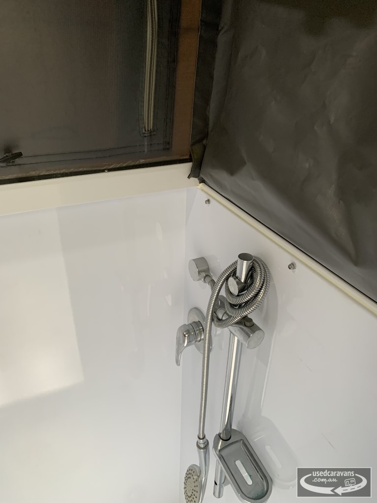 External shower with shower tent