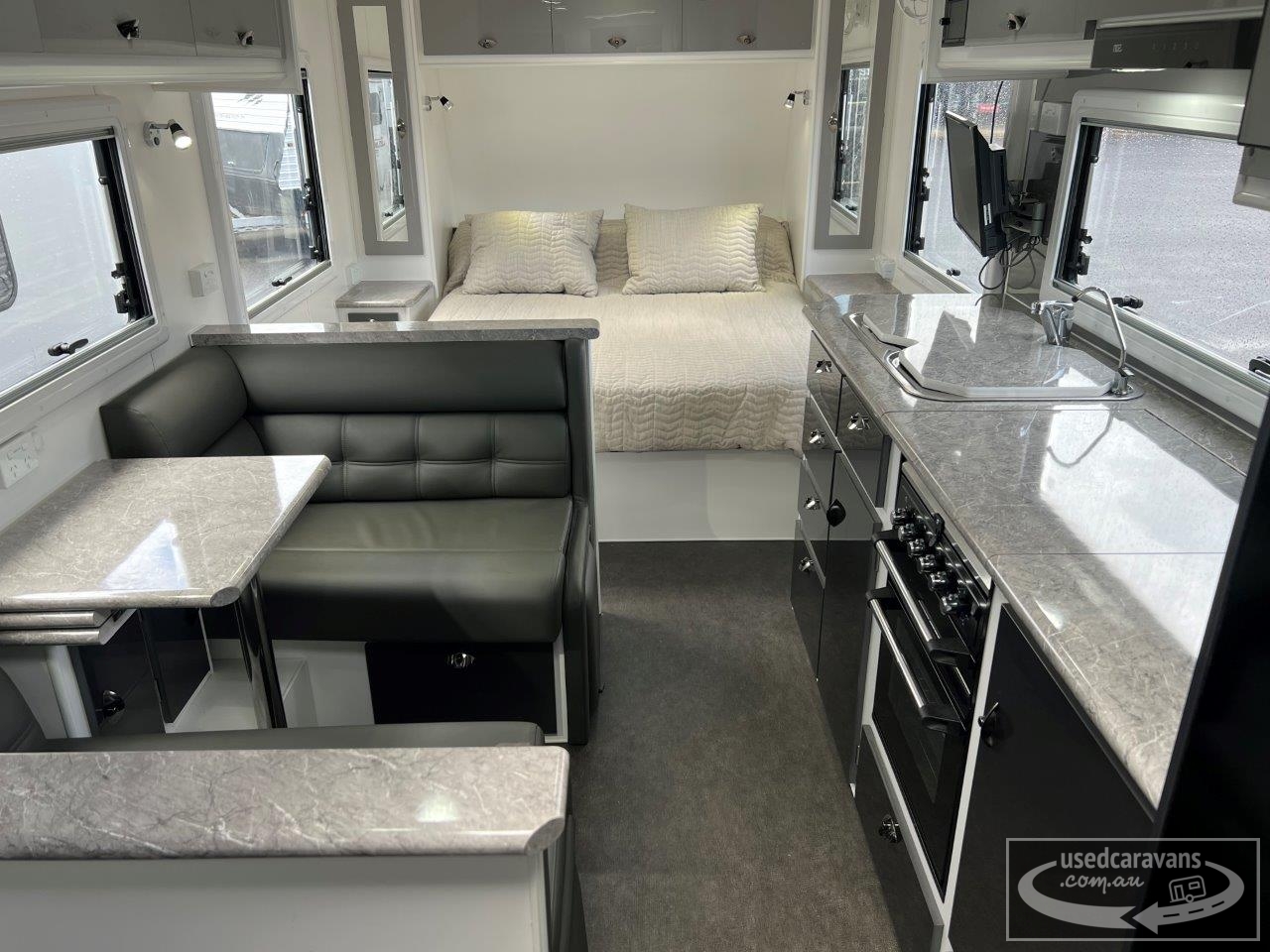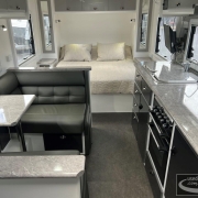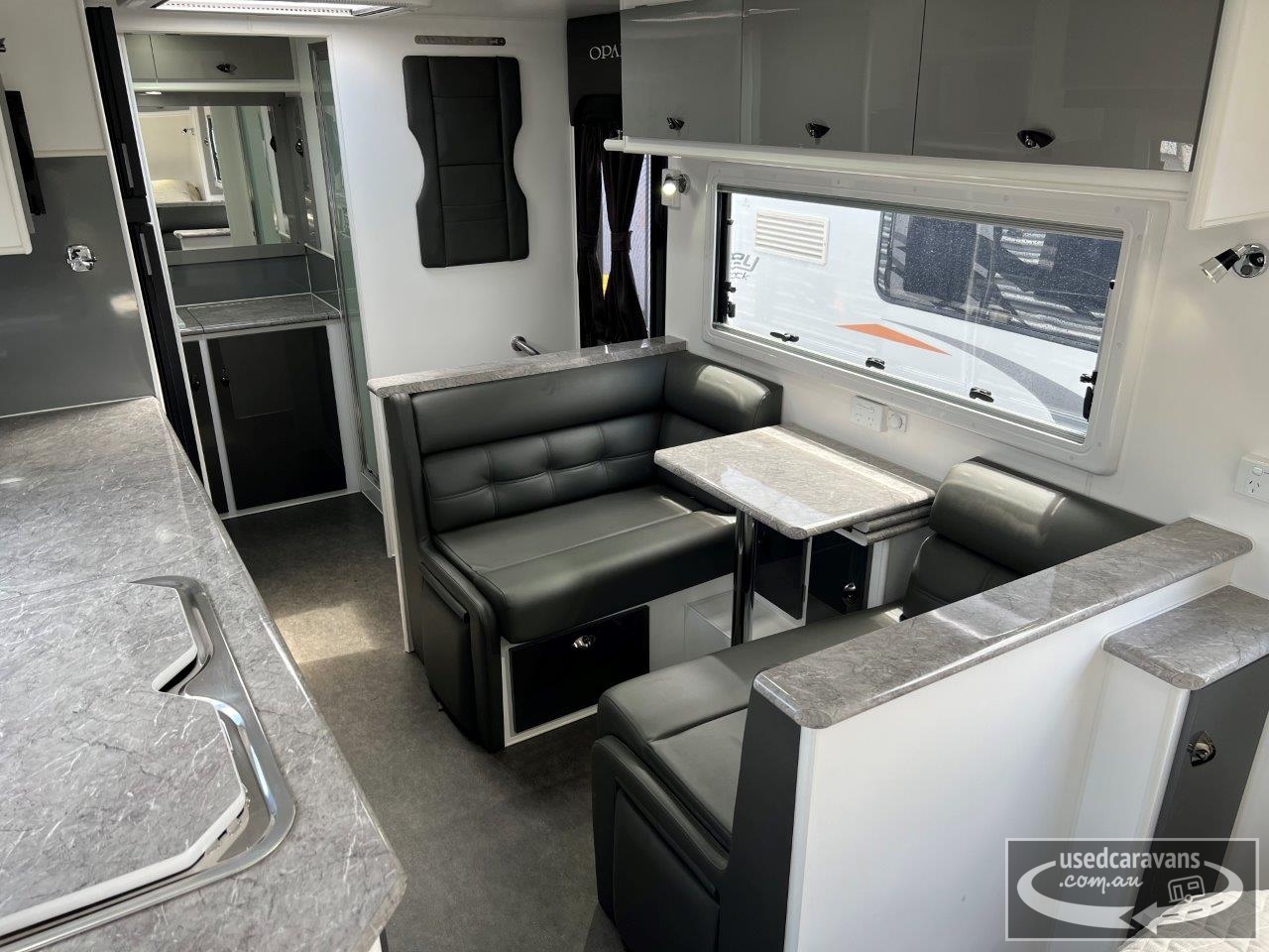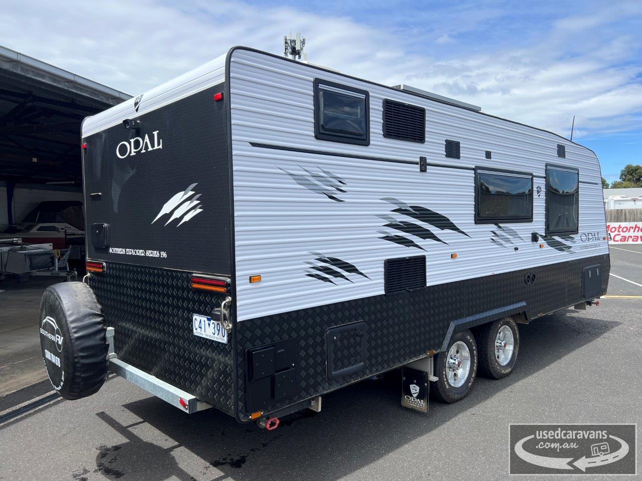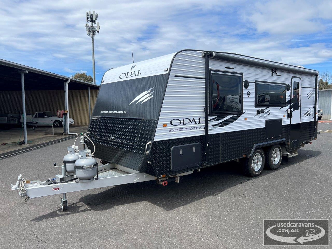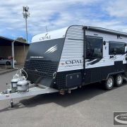 Opal Southern Explorer Series 196 Caravan, tandem axle, 15” wheels with 235/75 tyres, 6” A frame, cafe dinette with built in footrests, full ensuite with a top load washing machine, gas/electric stove, grill & oven, double pantry, queen island bed with under bed storage, double glazed windows with built in blinds & fly screens, 180 lt 3 way fridge/freezer, Winegard digital antenna & Sensar Pro, gas/electric hot water service, LED lighting inside and out, LCD TV/DVD, AM/FM/CD player with internal & external speakers, roll out awning, 12 volt battery pack & solar panel, reverse cycle air conditioner, 12v Sirocco fan, storage tray in A frame, chequer plate front & sides, front & tunnel boots, outside bbq point, picnic table, external tv point, external shower, tare 2367 kgs, C41390