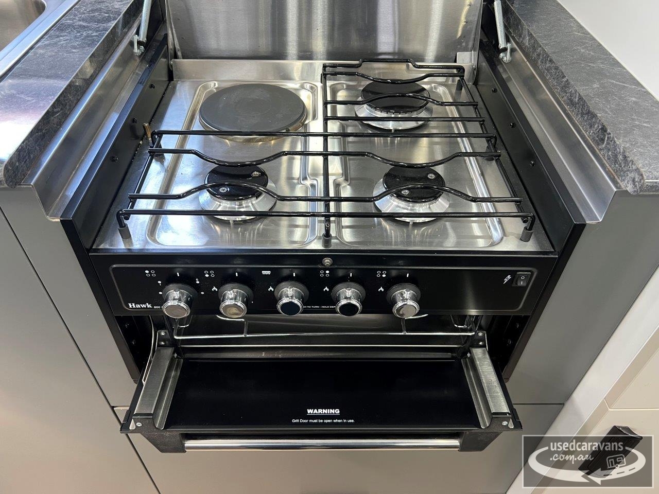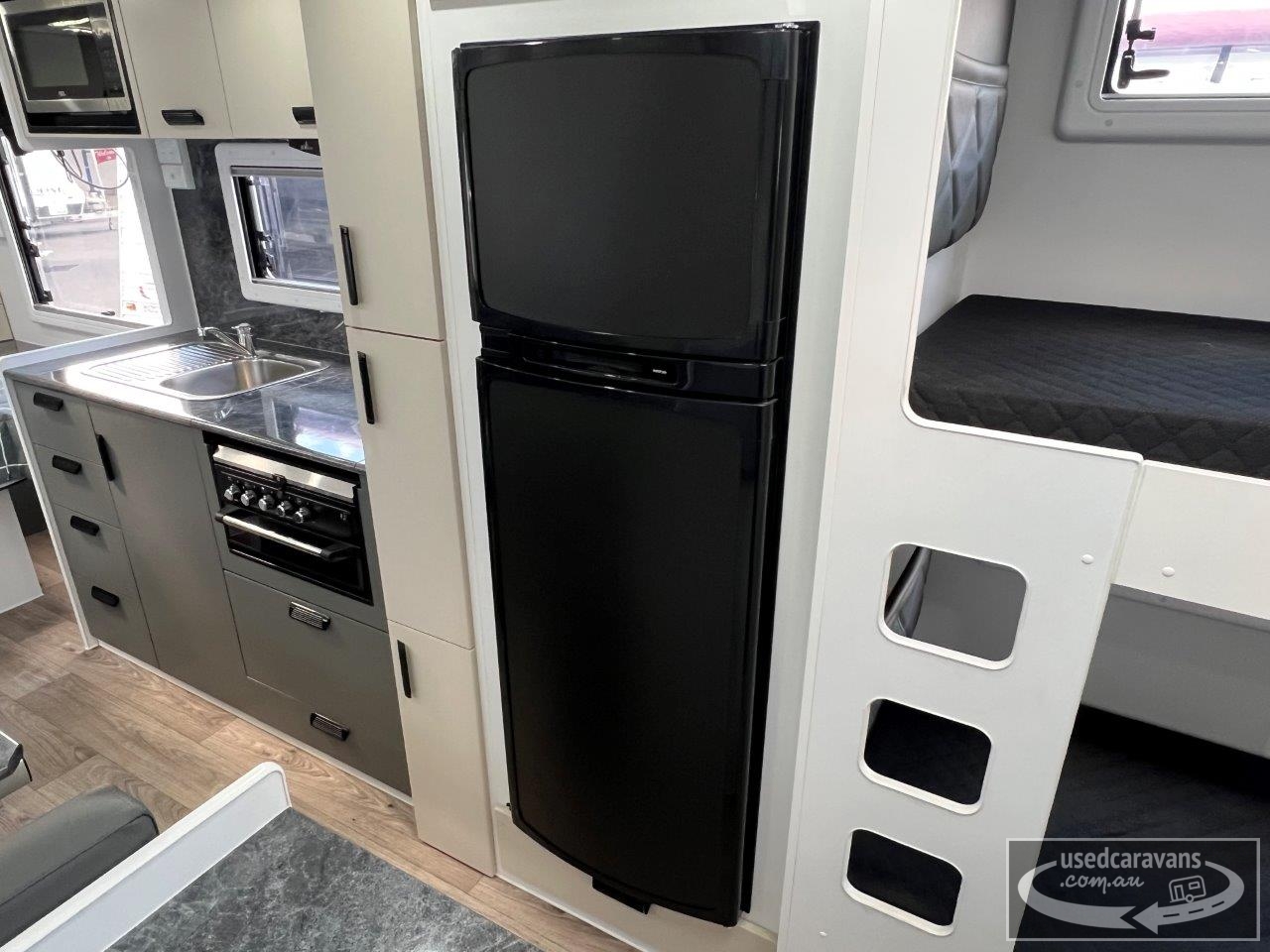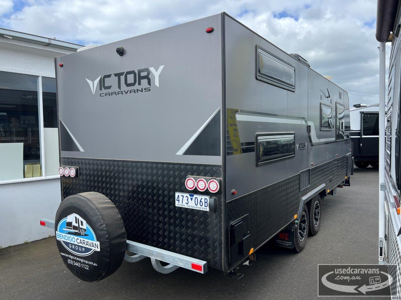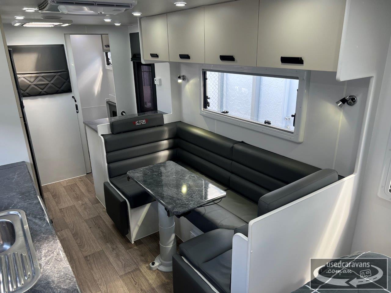 Victory Trophy Series Bunk Bed Caravan, 2 bunks with built in ladder, queen island bed with innerspring mattress & under bed storage, double glazed windows with built in blinds & flyscreens, full ensuite, top load washing machine, club lounge can convert to another bed, Thetford AES 3 way fridge/freezer, microwave, Gree air conditioning, gas/electric stove & grill, gas/electric hot water service, DO35 hitch, 6” chassis, tandem axle with shock absorbers, 245/75 tyres with 16” wheels, tunnel boot, battery pack & solar panel, roll out awning, chequer plate front & rear, stereo with internal & external speakers, picnic table, tare 2542kgs, 47306B