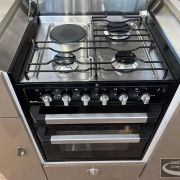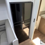 Dometic 3-way fridge, gas/electric stove, grill & oven, and microwave – fully equipped kitchen for all your meals