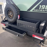 Externally, storage is generous and thoughtfully designed. A large multi-compartment front toolbox with slide-out trays provides easy access to gear, generators, or cooking equipment. At the rear, a heavy-duty bumper with wood box, jerry can holders, and storage drawer ensures you have room for all the essentials required for remote travel.
