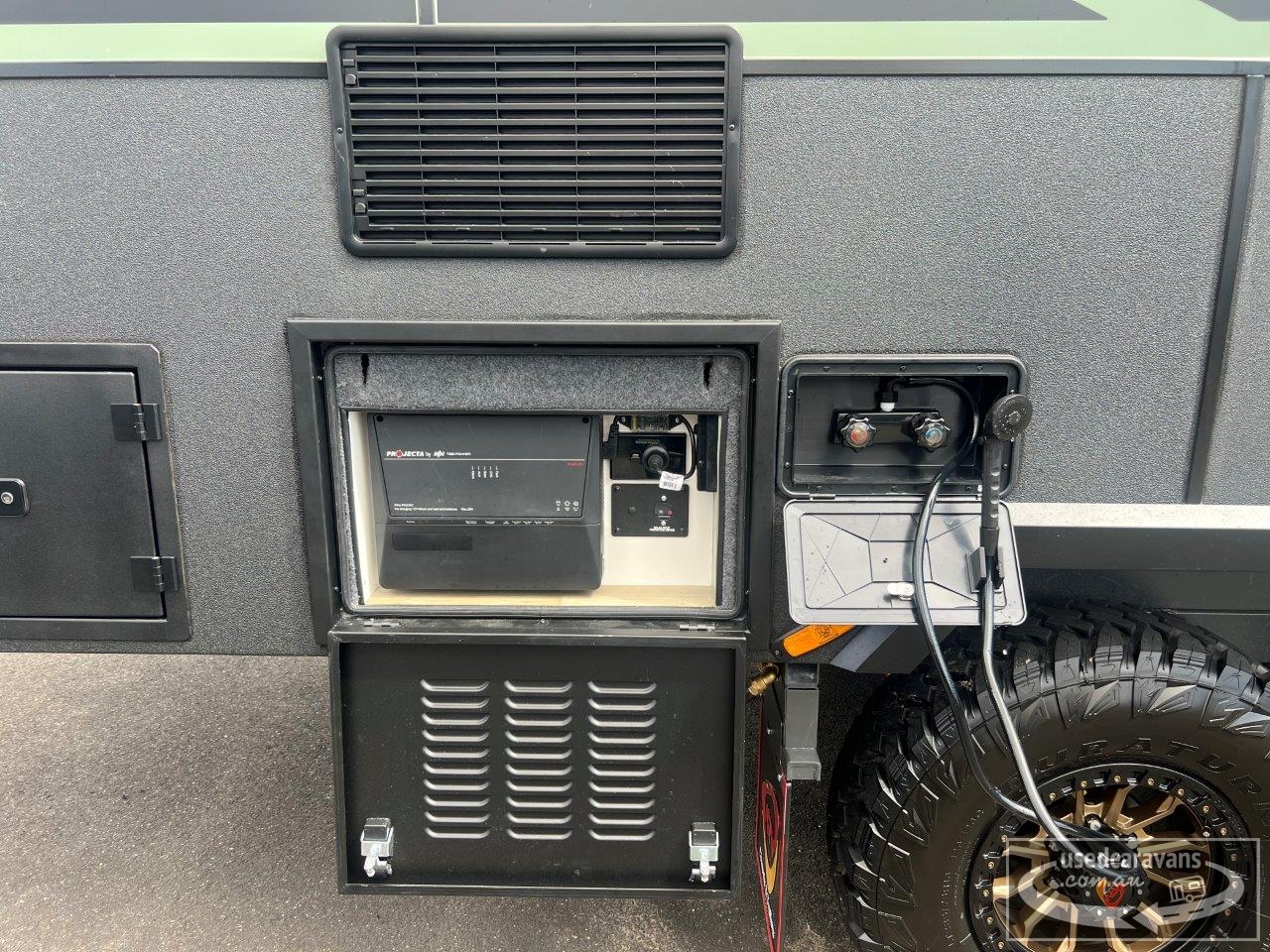 For extended off-grid capability, the electrical system is purpose built for independence. The van is equipped with 2 x 200Ah lithium batteries, supported by 3 x 250W solar panels, delivering reliable renewable power wherever you travel. A 3000W inverter allows you to run 240V appliances with ease, while the Projecta PM335C battery management system intelligently monitors and manages charging, battery health, and power distribution.